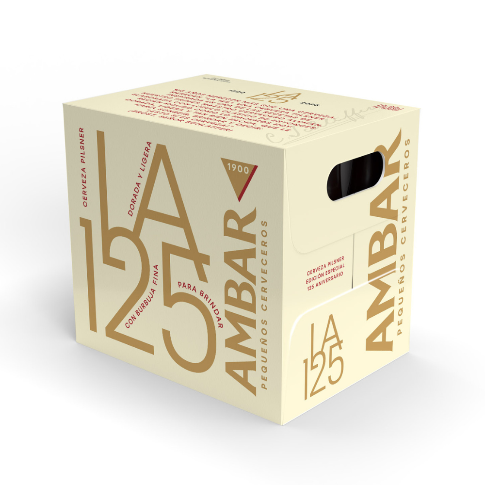 Ambar La 125 es una cerveza Pils de 4,8 grados de alcohol, inspirada en las recetas juveniles de nuestro primer maestro cervecero alemán, Charles Schlaffer. Una Lager elaborada exclusivamente con malta pálida que mantiene un ligero color dorado. Utiliza lúpulo alemán recién molido justo antes de añadirlo al proceso de elaboración.